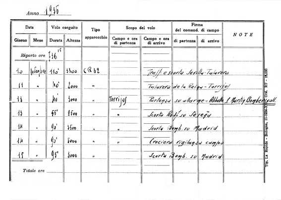 | cos110: Torrijos - novembre 1936. Primo abbattimento riportato sul Libretto di Volo di Costigliolo. |