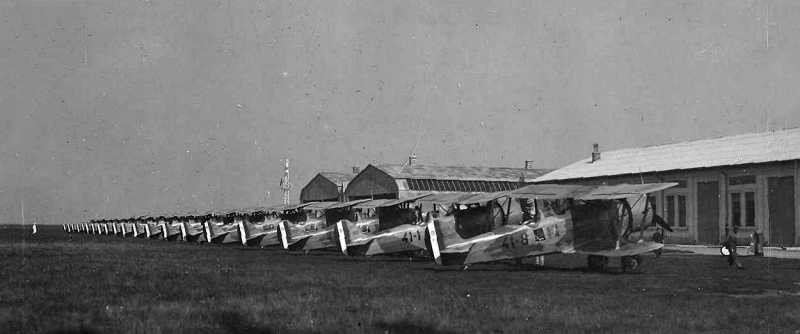 | uch059b: Gorizia, 1937. Schieramento di Ro 37 della 41^ Sq. davanti all'hangar Lancini Nord. |
