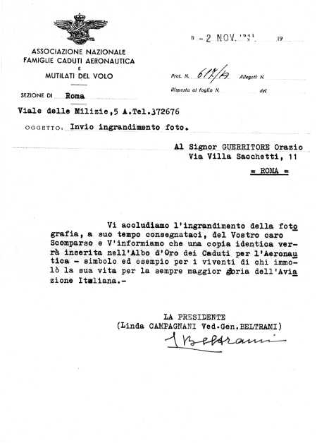 suo figlio maschio fu Pietro ufficiale volontario nella Regia Aeronautica