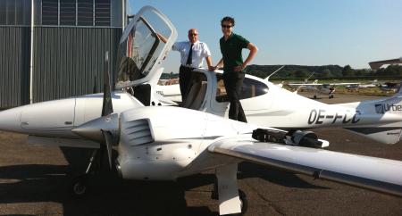 "Head of Training" della Scuola di Volo "Urbe Aero, davanti un DA-42. |